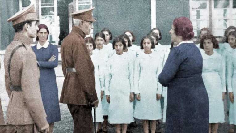 پذیرایی شاه از سلطان قابوس با دختران ایرانی